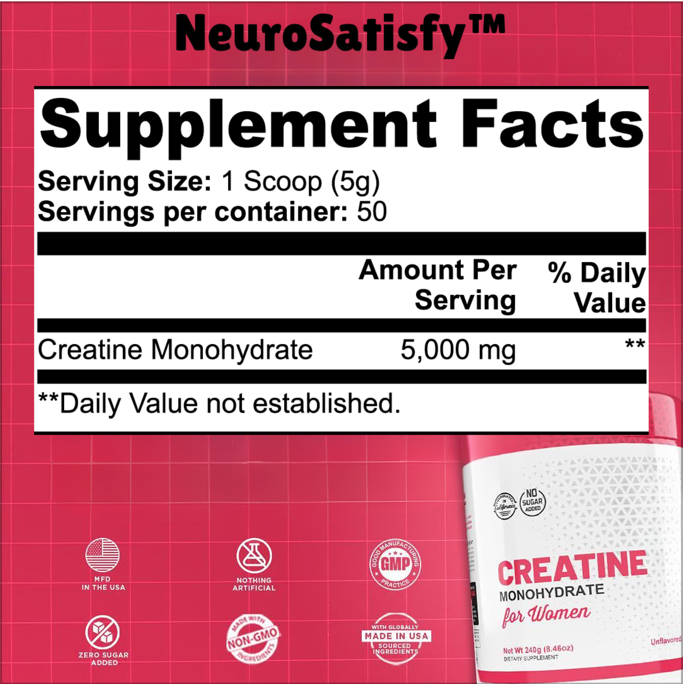 Cada medida aporta 5 g de creatina monohidratada para la plenitud muscular — un ingrediente puro y potente que maximiza el rendimiento físico y ayuda a mantener los músculos firmes y definidos, con resultados reales y visibles.