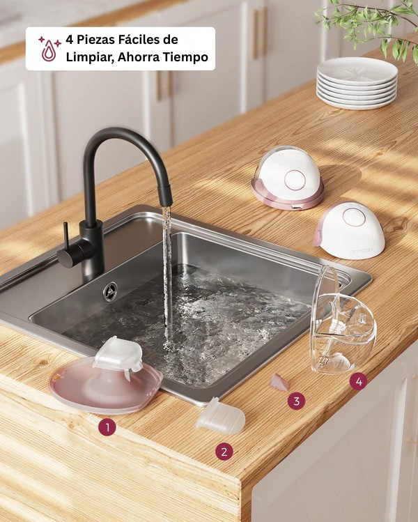 Con solo 4 accesorios fáciles de limpiar, el M6 Sacaleches de NeuroSatisfy™ te garantiza un mantenimiento rápido y sencillo, para que tengas más tiempo para lo que realmente importa.